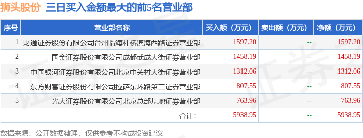 证券小知识:龙虎榜是交易所披露的竞价交易公开信息,现身龙虎榜的个股都是当日最为活跃的个股,是投资者日常重点关注的数据。交易所公布当日买入金额和卖出金额前五名的席位,其中一些席位代表特殊意义,如机构专用席位是指基金专用席位、券商自营专用席位、社保专用席位、券商理财专用席位、保险机构专用席位、保险机构租用席位、QFII专用席位等机构投资者买卖证券的专用通道和席位。深股通专用、沪股通专用为北向资金的交易席位。从龙虎榜数据可以发现和研究机构、游资和散户的资金动向。一些营业部席位经常上榜,市场知名度较高,投资者整理代表散户、游资、量化等不同资金的营业部席位。以下席位信息为市场资料整理,仅供参考。
